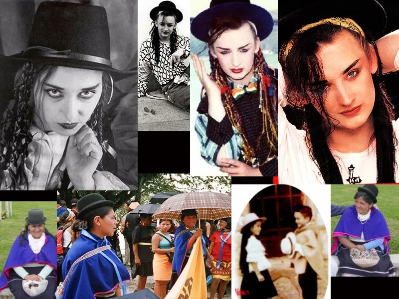 Aqui se me ocurrió decir que Boy George copió su estética de las campesinas del altiplano cundiboyancese colombiano.
